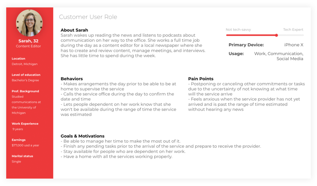 The first thing to understand was who were our potential users, so I facilitated a proto-personas workshop with the client and we defined two different profiles, one for the vendor and one for the customer: