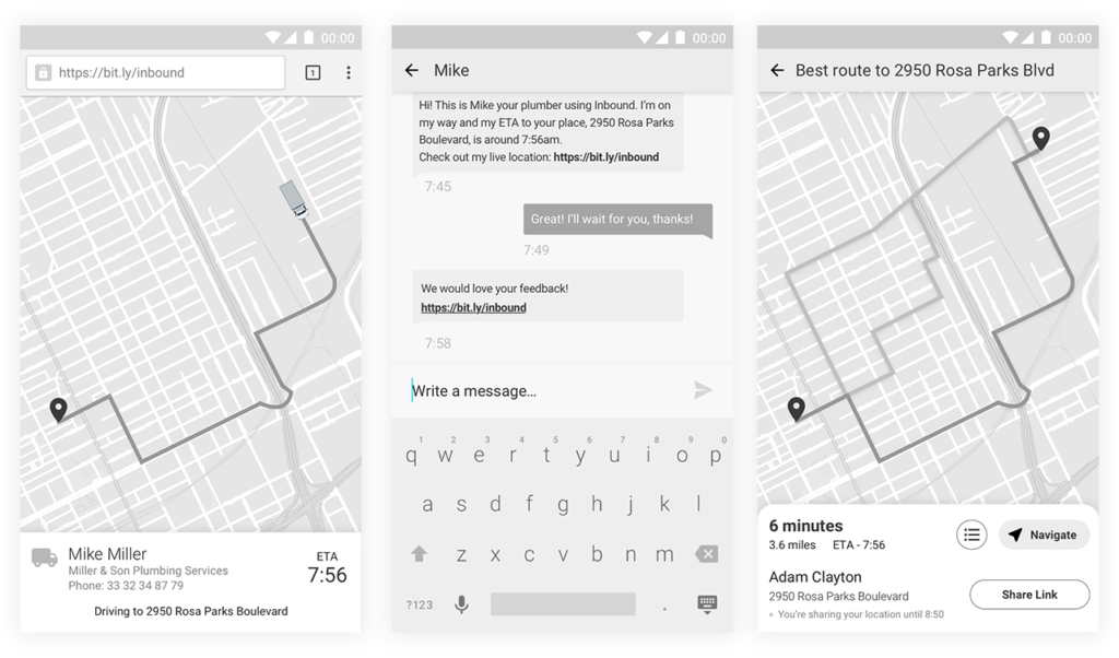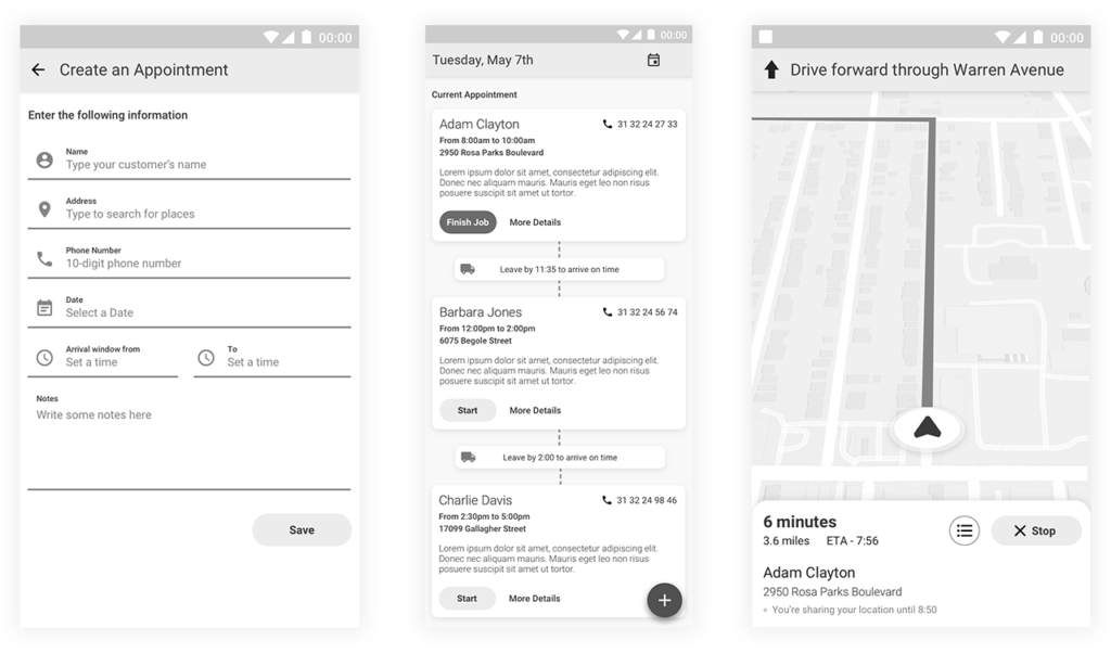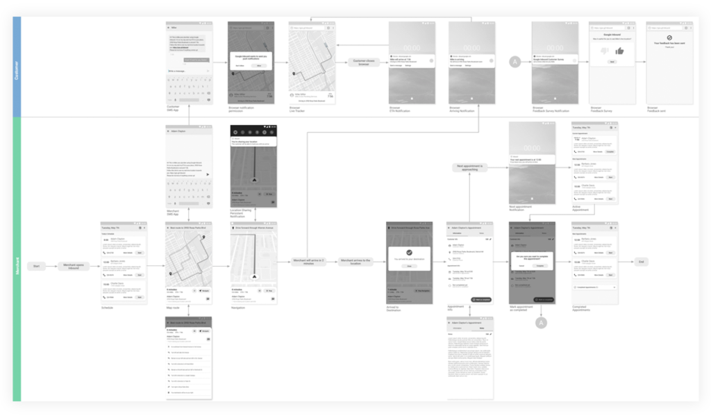 The idea was to add a feature to the MyBusiness app in which the vendors that offered their services in Maps would be able to schedule their visits and automatically create the best route depending on the times and distances. For the customer, they would be able to track at which time the vendor would arrive, so they could avoid waiting for them the whole day.